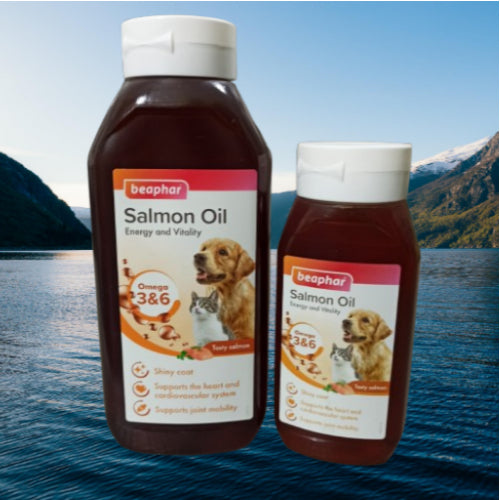Beaphar Salmon Oil'Olio di Salmone Beaphar' un integratore naturale,delizioso per cani e gatti, derivato da una pesca sostenibile.E naturalmente ricco di Omega 3 e 6, ottima fonte di acidigrassi essenziali, compreso lEPA e il DHA.I benefici per la salute includono un supporto alla mobilità nei cani enei gatti che soffrono di osteoartrite, il mantenimento dellafunzionalità cardiaca e del sistema vascolare, cute sana emantello lucido. I'Olio di Salmone Beaphar, offre un'ottimafonte di energia per i gatti che vanno fuori e i cani più attivi.Aiuta a promuovere la vitalità e può essere utilizzato peraumentare l'appetibilità del cibo.Dosaggio giornaliero consigliato: Gatti e cani di piccolaloglia: 7,5ml, Cani medi: 10 ml, Cani grandi: 15 ml. Agitarelo bottiglia prima dell'uso. Versare la quantità necessaria suiCibo dell'animale, Se usato correttamente I'Olio di SalmoneBeaphar non causa un aumento del peso. Tenere sempre acqua fresca a disposizione.Composizione: Olio di Salmone(Omega 6: 15,7%, Omega 3: 16,3%, di cui EPA 2,8% e DHA3,9%),Costituenti Analitici: Oli e grassi grezzi 99,Antiossidanti. Valori Nutrizionali: 9400 Kcal/kg.Istruzioniper la conservazione: Tenere in un luogo fresco easciutto, ben chiuso, proteggendolo dalla luce.Mantenere nella confezione originale. Non refrigerare ocongelare. Tenere fuori dalla portata dei bambini.