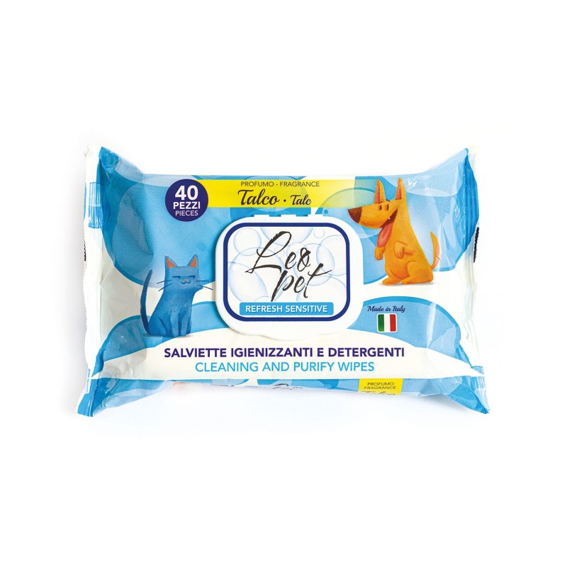 Leo Pet -Salviette Igieniche per Cane/Gatto Talco da 40 Pz. con chiusura ermetica.