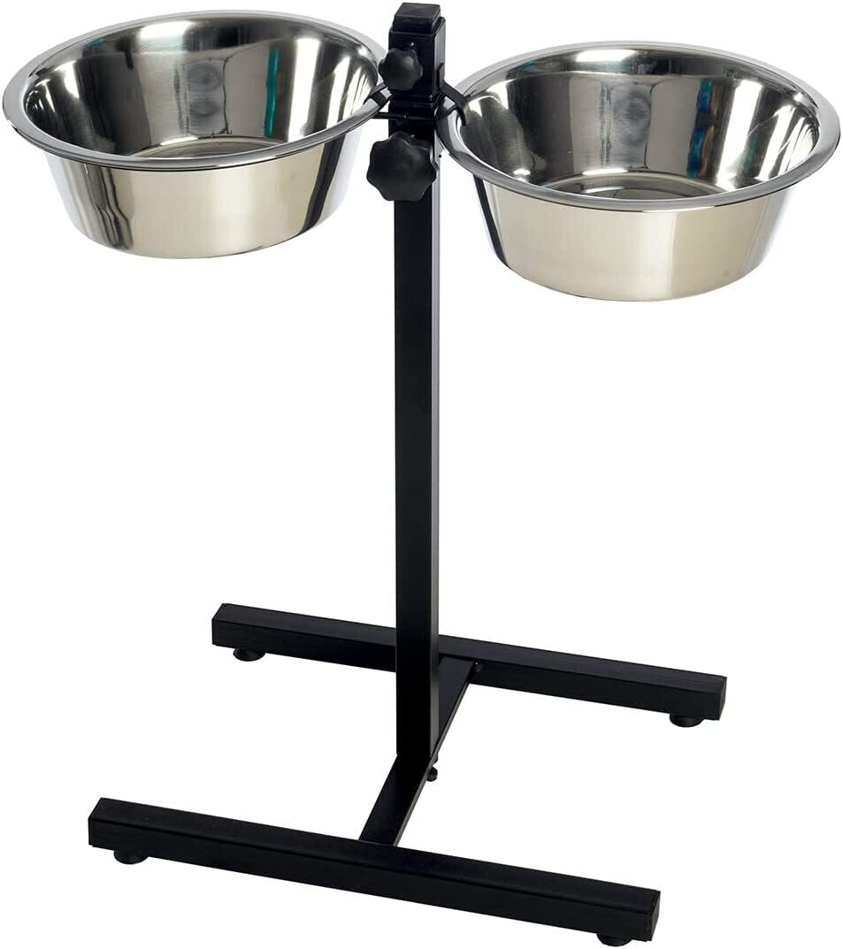 Supporto in metallo per ciotole regolabile a due posti compreso ciotole in acciaio inox 2800 ml. mis.fino a 60 cm dal pavimento